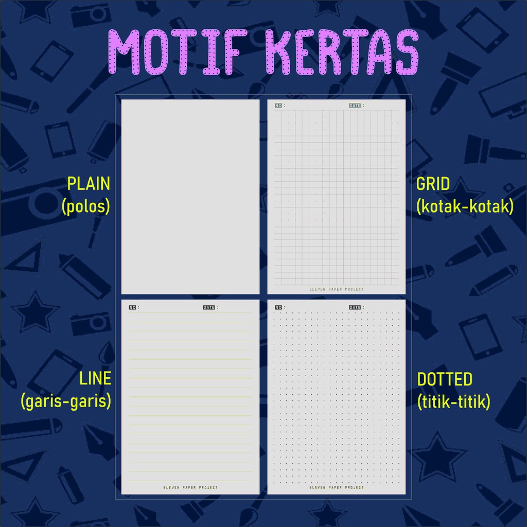 Produk ini memiliki 4 Variasi Motif Isi yaitu : PLAIN,LINE,GRID,DOTTED,